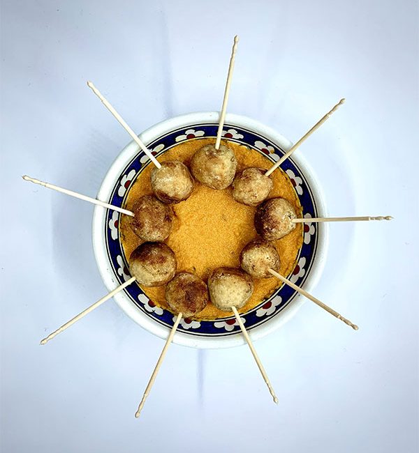 Préparez de petites boulettes d’agneau, légèrement dorées à la poêle, à tremper généreusement dans le tartinable Carotte & cumin.